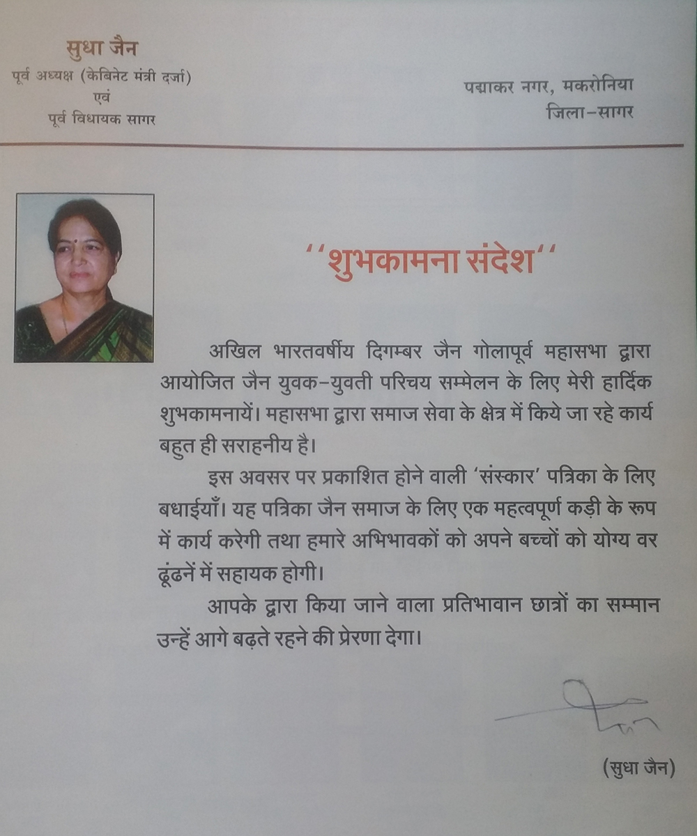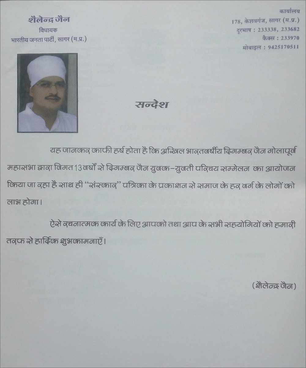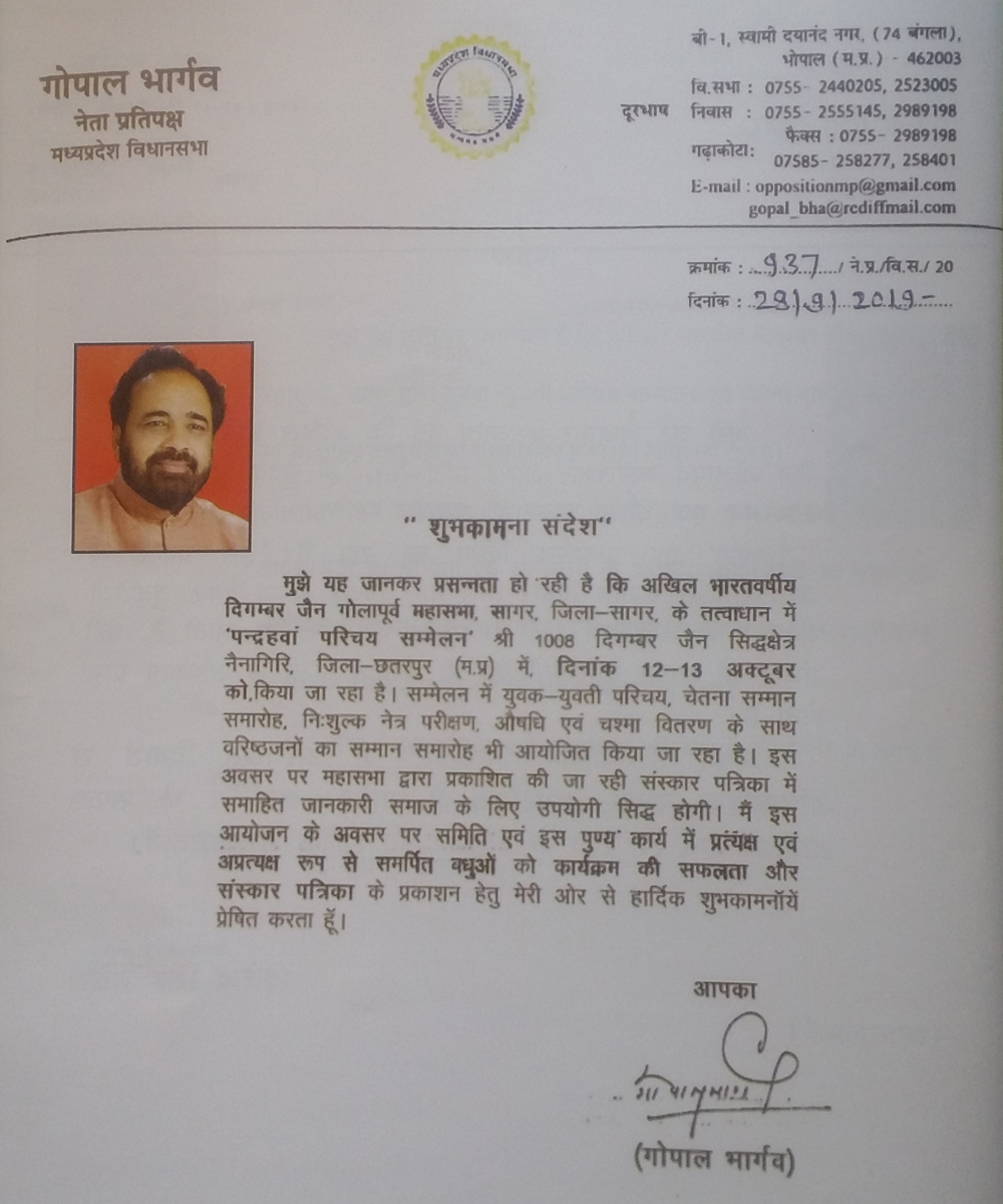 अखिल भारतवर्षीय दिगंबर जैन गोला पूर्व महासभा का परिचय सम्मेलन -2025 का आयोजन दिनांक 4 एवं 5 अक्टूबर 2025 को आदर्श गार्डन मोती नगर सागर में होना निश्चित हुआ है, आप सभी सपरिवार सादर आमंत्रित हैं, संस्कार पत्रिका हेतु प्रविष्टि फॉर्म अपने निकटतम संकलनकर्ता के पास या महासभा के कार्यालय सागर में जमा कर सकते हैं । फॉर्म भरने की अंतिम तिथि 31 अगस्त 2025 है साथ ही महासभा के द्वारा ऑनलाइन के माध्यम से जनगणना का कार्य निरंतर जारी है,अभी तक जिन भी समाजजनों ने अपने परिवारों की जनगणना में एंट्री नहीं की है ,वह अति शीघ्र इस कार्य को संपन्न अवश्य करेंI