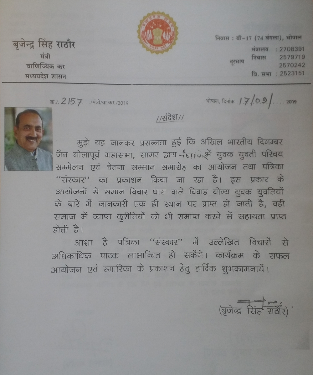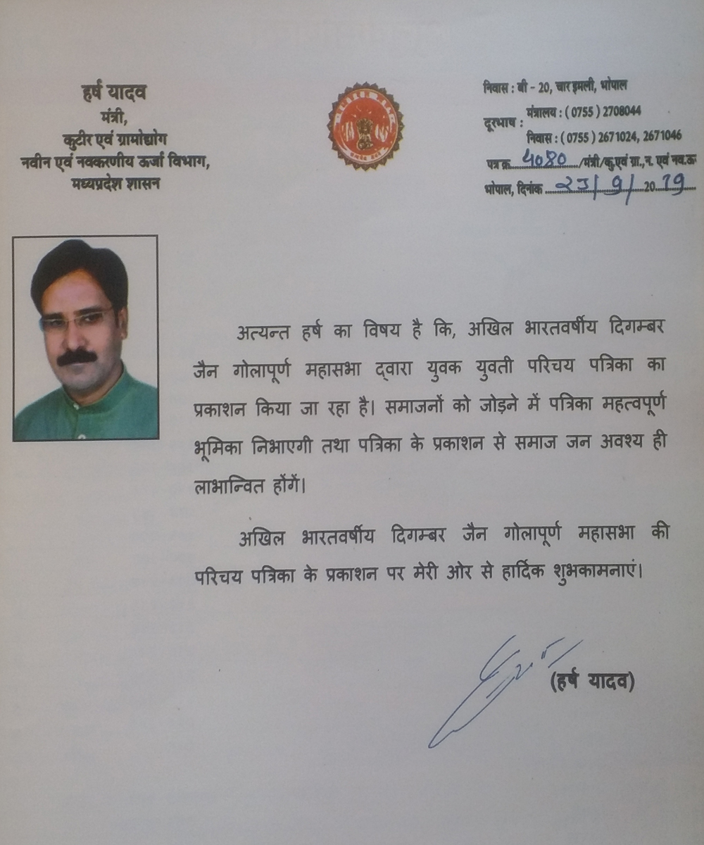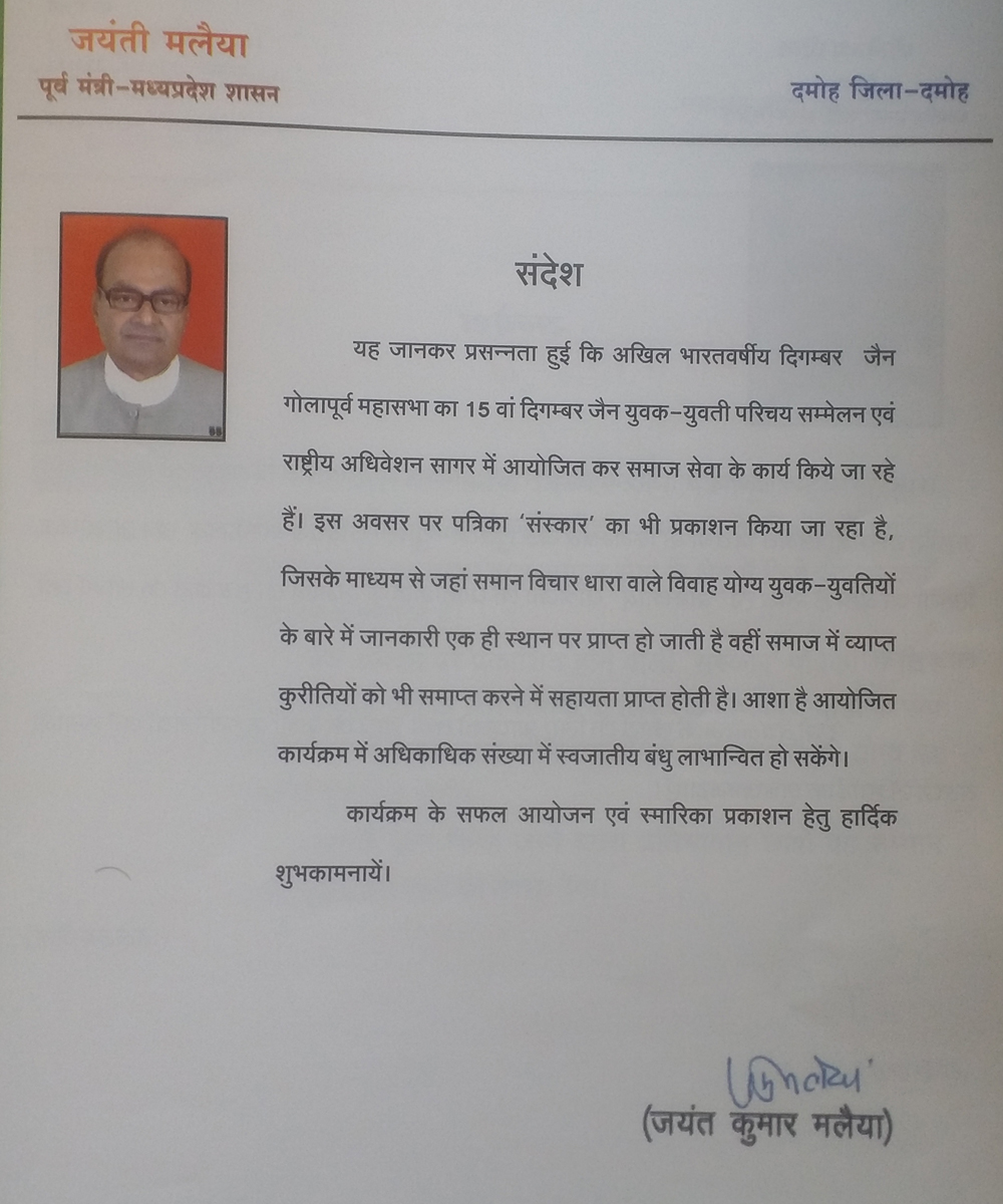 अखिल भारतवर्षीय दिगंबर जैन गोला पूर्व महासभा का परिचय सम्मेलन -2025 का आयोजन दिनांक 4 एवं 5 अक्टूबर 2025 को आदर्श गार्डन मोती नगर सागर में होना निश्चित हुआ है, आप सभी सपरिवार सादर आमंत्रित हैं, संस्कार पत्रिका हेतु प्रविष्टि फॉर्म अपने निकटतम संकलनकर्ता के पास या महासभा के कार्यालय सागर में जमा कर सकते हैं । फॉर्म भरने की अंतिम तिथि 31 अगस्त 2025 है साथ ही महासभा के द्वारा ऑनलाइन के माध्यम से जनगणना का कार्य निरंतर जारी है,अभी तक जिन भी समाजजनों ने अपने परिवारों की जनगणना में एंट्री नहीं की है ,वह अति शीघ्र इस कार्य को संपन्न अवश्य करेंI